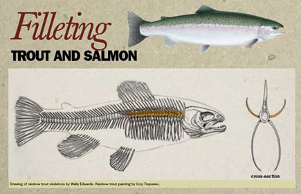 La peau et la mince pellicule entre la peau et la chair contiennent une bonne proportion de contaminants. Les enlever avant de faire cuire est une bonne pratique (sauf si on fume le poisson, il préférable de laisser la peau et de l'enlever par la suite). Dans certaines couches de gras du poisson, on y retrouve les plus fortes concentrations de contaminants. Il y a quatre sections de gras que je vous suggère d'enlever pour avoir un meilleur poisson: sur le dos, le long de la ligne latérale (à gauche et à droite), et sur le ventre. Ils sont facilement reconnaissables et le ventre est assez mou pour deviner qu'il est très gras.