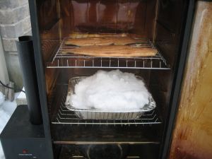 J'avais déjà essayé de fumer à froid l'été dernier, mais le résultat n'était pas convaincant. Dehors il faisait trop chaud, ainsi à l'intérieur du fumoir c'est le même problème. Même en ajoutant de la glace, j'avais de la misère à faire baisser la température en bas de 125°F.