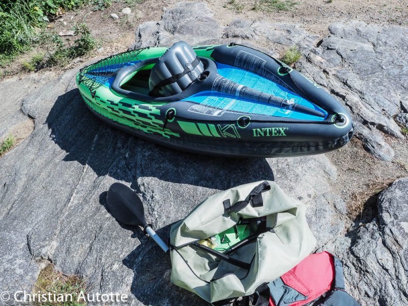 Mon premier kayak gonflable était un double, stable mais plutôt long et assez lourd. Il se rangeait dans un gros sac à dos et je portais la pagaie à bout de bras. Mon nouveau kayak est tout à l'opposé.