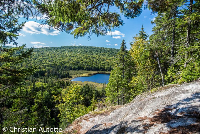 En paysage, la règle des tiers nous indique que les grandes lignes ne doivent pas se retrouver au milieu de l'image. Idéalement, la ligne d'horizon devrait également être placée sur une des deux lignes horizontale de notre tic-tac-toe, mais laquelle, celle du haut ou celle du bas? Tout dépend du paysage. Si le ciel est l'élément dominant de l'image, on place généralement l'horizon plus bas, alors qu'on place l'horizon plus haut pour donner plus d'importance aux éléments de l'avant plan ou du milieu de l'image.