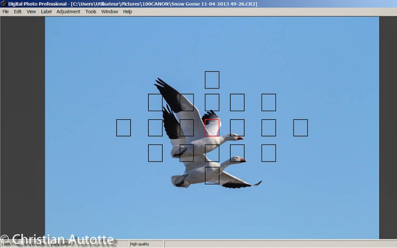 Item numéro un : la mise au point. Il ne faut pas s'imaginer que la mise au point automatique des appareils modernes est une solution absolue pour obtenir une mise au point sur le sujet. Il y a de prime abord le choix des points de focus utilisés. Si tous les points de focus sont actifs, beaucoup d'appareils font la mise au point sur le sujet le plus près : la branche d'un arbre plutôt que l'oiseau ou le feuillage devant le chevreuil. Il faut alors s'assurer de sélectionner un seul point de focus et le placer directement sur le sujet que l'on veut photographier. Mais même ça pourrais être insuffisant pour assurer le succès de l'image.