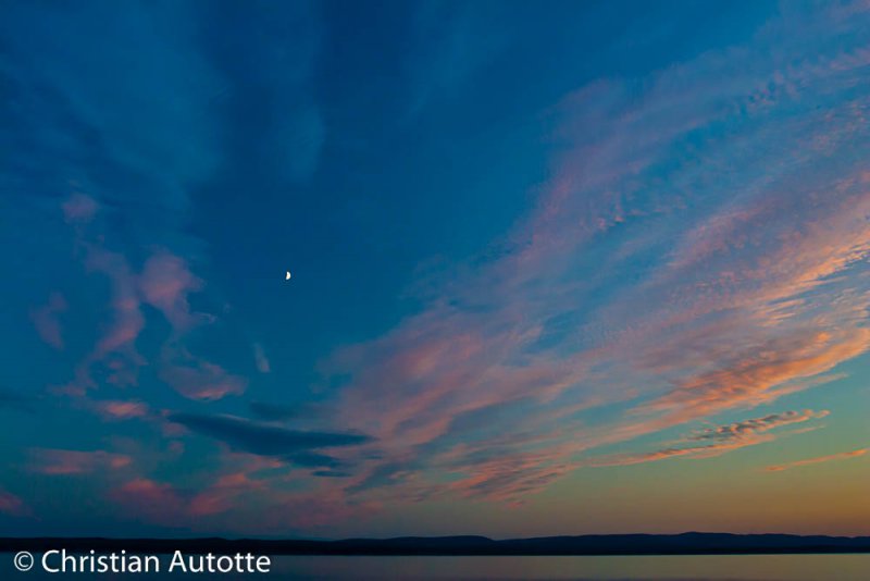 Où placer l'horizon sera souvent déterminé par l'importance accordée au ciel par rapport au sol. Un paysage n'est pas obligatoirement composé d'éléments terrestres. Une photo peut nous être inspirée par un ciel particulièrement intéressant, auquel cas il sera logique de donner plus d'importance au ciel qu'au sol et donc de placer la ligne d'horizon plus basse dans l'image. Même si la règle des tiers demande généralement de placer la ligne d'horizon à environ un tiers du bas ou du haut de l'image, il ne faut pas se sentir obliger de suivre cette règle à la lettre. Après tout, les règles de composition ne sont pas des lois absolues et on peut se permettre de les briser à chaque opportunité qui se présente. Dans certaines de mes images la ligne d'horizon est dangereusement près du bord de l'image, et pourtant l'image « fonctionne »…