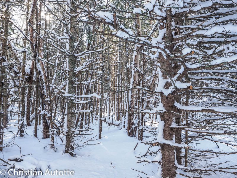 Je reviens de quelques jours dans le Parc du Bic. C'est un parc qui m'est familier pour l'avoir visité à maintes reprises… en été. J'avoue avoir été quelque peu désorienté par cette première visite hivernale. Plusieurs des routes que l'on emprunte durant la belle saison sont fermées à la circulation en hiver; la neige venue, elles se transforment en sentier de ski de fond ou de raquettes. Les autres pistes de randonnées deviennent pour la plupart des pistes de raquettes.