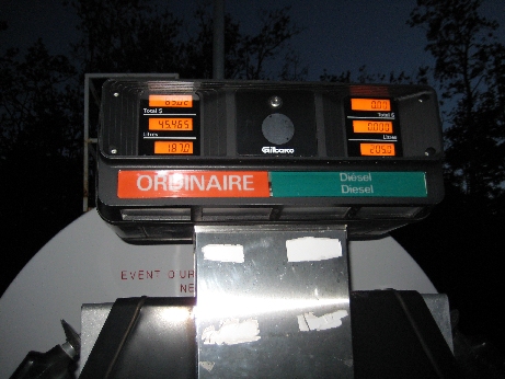 Nous profitons de l'arrêt au Chicotte pour faire le plein. Ne soyez pas surpris de constater que l'essence sur l'île est à 1,87 $ le litre comparativement à 1, 47 $ à Rivière du Loup et Rimouski et 1,37 $ à Drummondville.