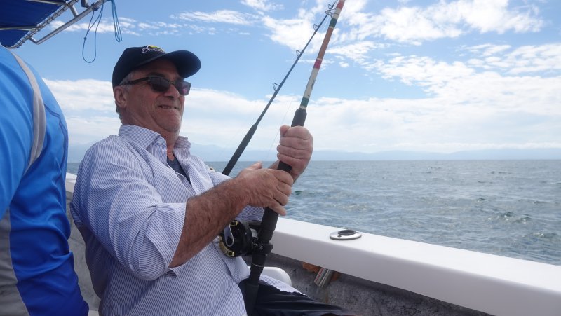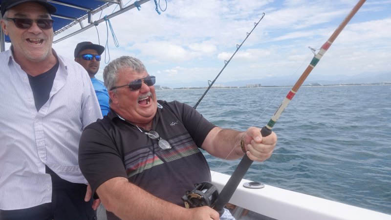 Mercredi, 12 février 2020, nous nous sommes donné rendez-vous au port Paradise Village à Puerto Vallarta pour une journée de pêche en haute mer. Accompagné de quatre amis, du capitaine et de son aide de camp, nous avons pris la mer à 7h00 le matin. Pour ma part, c'est ma deuxième expérience de pêche en mer et nous avons demandé au capitaine de nous amener LOIN pour en pêcher du gros (thon, espadon, merlin, etc.). Malheureusement, les vagues nous ont fait rebrousser chemin. Nous n'avions pas le bateau pour contrer l'ampleur des vagues et l'inconfort était extrême. Nous avons dû changer nos plans et naviguer dans la Bahía de Banderas à Puerto Vallarta. Faut dire, tout de même, que cette Baie est une des plus grandes baies au monde.