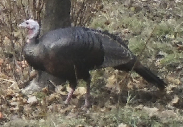 C'est les rêves remplis d'espoir que j'entreprends la nuit de mercredi. Au levé, beaucoup trop tôt même si je n'ai pas de cadran, je me fais un bon café et chaque cinq minutes, je vais éclairer le haut de la cheminée pour être sûr que le vent ne me jouera pas de tour. L'absence de gelée joue en ma faveur, je réussie à entrer dans mon affût à 70 pieds de distance, une femelle et un veau y sont présents. Ils demeurent en place, le temps fil et un spike vient me voir, un bel animal. Un dindon sauvage (jake) se pointe le bout du nez, c'est drôle de le voir aller. C'est la première fois que je vois un dindon dans mon spot à l'automne.