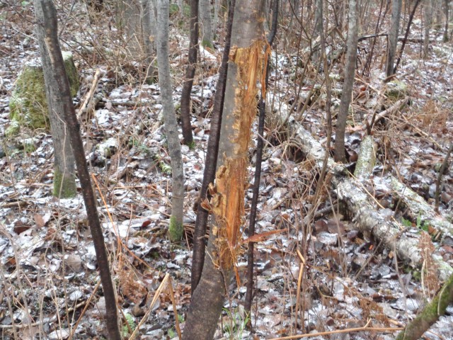 Vers 16h20, il revient me voir. Je suis à moins de 70 pieds de distance et le vent est inexisant ou presque. Un courrant d'air fonce vers lui, il n'en faut pas plus pour qu'il déguerpisse en soufflant sur une bonne distance. Même si mon expérience me dicte de m'en aller avant de commettre l'irréparable, je demeure en place bouche bée avec un vent destructeur. L'envie de chasser cette bête après l'attente d'un an est plus forte que tout. Un temps après, non pas sans effort pour masquer mon odeur, une femelle et sa progéniture avancent d'un pas décidé. Quelques secondes s'écoulent avant que celle-ci détecte le subterfuge et imite son prédécesseur en quittant les lieux histérique...La raison prends le dessus et je quitte les lieux...Trop tard, le mal est fait.