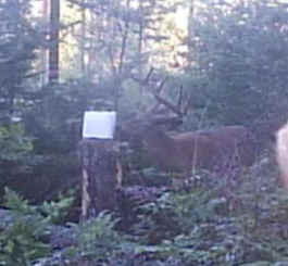 Lors de notre prospection de l'été, nous avions photographié quelques bucks sur notre terre. La photo de gauche est un zoom de celle de la photo ci-dessous. Ce buck, nous l'avons surnommé le monstre de St-Wen !