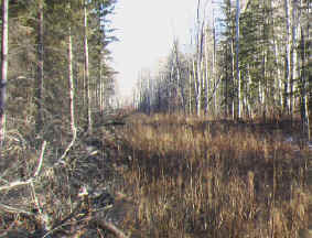 Dominic et moi partons au site qu’il a prévu pour nos premières journées de chasse. La terre est actuellement exploitée par des industries forestières. Dans les sections visées, ce sont des coupes intégrales. Je pense à Richard Desjardins avec l’aurore boréale. La terre est grande et les secteurs boisés sont suffisamment grands pour imaginer que le territoire a du potentiel. La forêt est différente de celle du Québec. Pas de chênes, ni de hêtres, aucuns cèdres… bref ce serait plus facile de vous énumérer les essences qu’on y retrouve; des épinettes, des peupliers et des bouleaux. Voilà ! Les boisés sont juxtaposés à des champs qui procurent de la nourriture en quantité aux chevreuils .