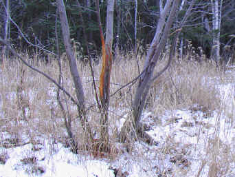 Nous nous rendons à notre secteur de chasse et nous déterminons une heure de rencontre pour le dîner. J’ai décidé d’explorer davantage le territoire. Ma plus grande surprise est d’apercevoir un nombre impressionnant de signes de présence de « bucks » dans ce secteur. Les frottages ne sont pas seulement nombreux mais ils sont impressionnants . Tout est bien sûr relatif, mais mon jugement se fait en fonction des territoires que j’ai fréquentés ces dernières années. Quant aux grattages, j’en ai vus qui font deux fois la longueur de ma 30-06. Voir trois ou quatre grattages en ligne sur environ 100 mètres n’est pas rare. J’ai observé quelques femelles mais pas le « buck » tant convoité.